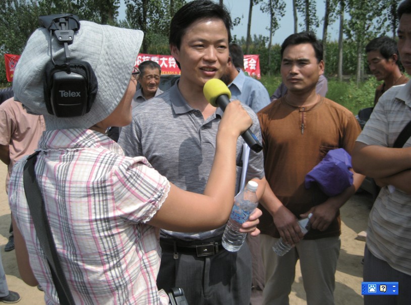 丰达种业公司与“山东人民广播电台第六频道”联合举办“送科技下乡暨7886抗病大铃王懒汉棉现场观摩会”。山东人民广播电台的大型直播车开进济阳县济阳镇粮食口村的7886抗病大铃王懒汉棉示范田旁,现场报道7886懒汉棉的奇特之处。闻讯赶来的各地棉农不下三百人,熙熙攘攘,人声鼎沸。会上,丰达公司张志发总经理接受记者的采访。