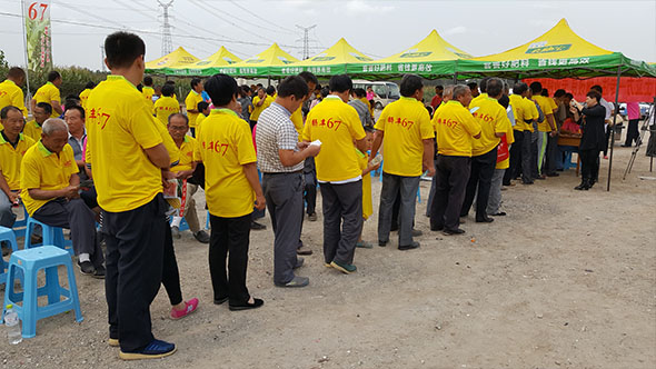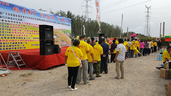 北京北方丰达种业公司与山东广播电视台乡村频道合作已整整10年。2016年9月18日,公司再次牵手乡村频道《淘淘农资》栏目组,来到济南市济阳县太平镇王卢村,举行“2016送科技下乡既畅丰67现场观摩订货会”。观摩订货会现场不仅来自济南地区各县的听众及丰达老用户,而且还有来自菏泽、德州、滨州、淄博、潍坊等地新老用户共计600余人。与会人员亲眼目睹了畅丰67高产玉米高产优势并给予肯定。来自聊城地区的一位广播听众李增新说:今年我们当地玉米受高温影响,授粉不好,有的玉米棒仅长半截粒,减产严重,看了这畅丰67没啥秃尖,棒槌大、穗位低、这快收的玉米了,棵还是青绿的,估计产量能达到1600多斤。对于老李评价观摩户没有异议,特别是济阳县到会的观摩户,看了这玉米好品种后大家订货踊跃,订货队伍排了3条长达50米的队伍,合计现场订货1万余亩。