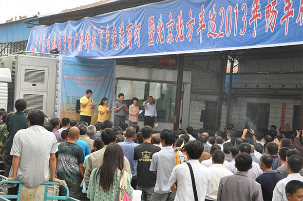 2013年9月5的山东省济南市商河县观摩会现场已经人头攒动、热闹非凡,来自全省各地以及邻省的听众朋友、种植户朋友、经销商朋友,及乡村广播商河当地忠实的听众朋友共计400多人到会观摩。