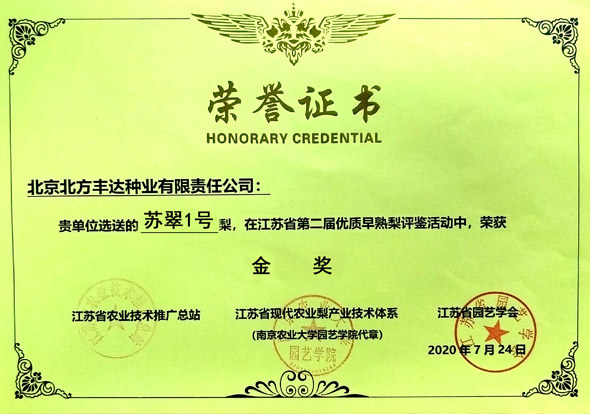 江苏省有发展早熟梨的优势,但缺乏优秀的早熟梨品种,20多年来一直以‘翠冠’‘若光’等早熟品种为主。我院自主选育的‘苏翠1号’由于成熟期更早,品质更优,市场售价比‘翠冠’‘若光’等品种高出3倍以上等显著优势,现已成为各地争先发展的优选品种,在梨产业结构调整和农民增收工作中发挥了重要作用。